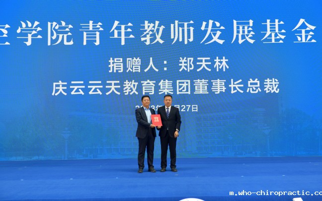 我校校友会副会长、1979级化学专业优秀校友、山东云天教育集团董事长兼总裁郑天林先生向母校捐款人民币300万元。我校党委委员、副校长刘宝民代表学校接受捐赠,并向郑天林校友颁发证书。