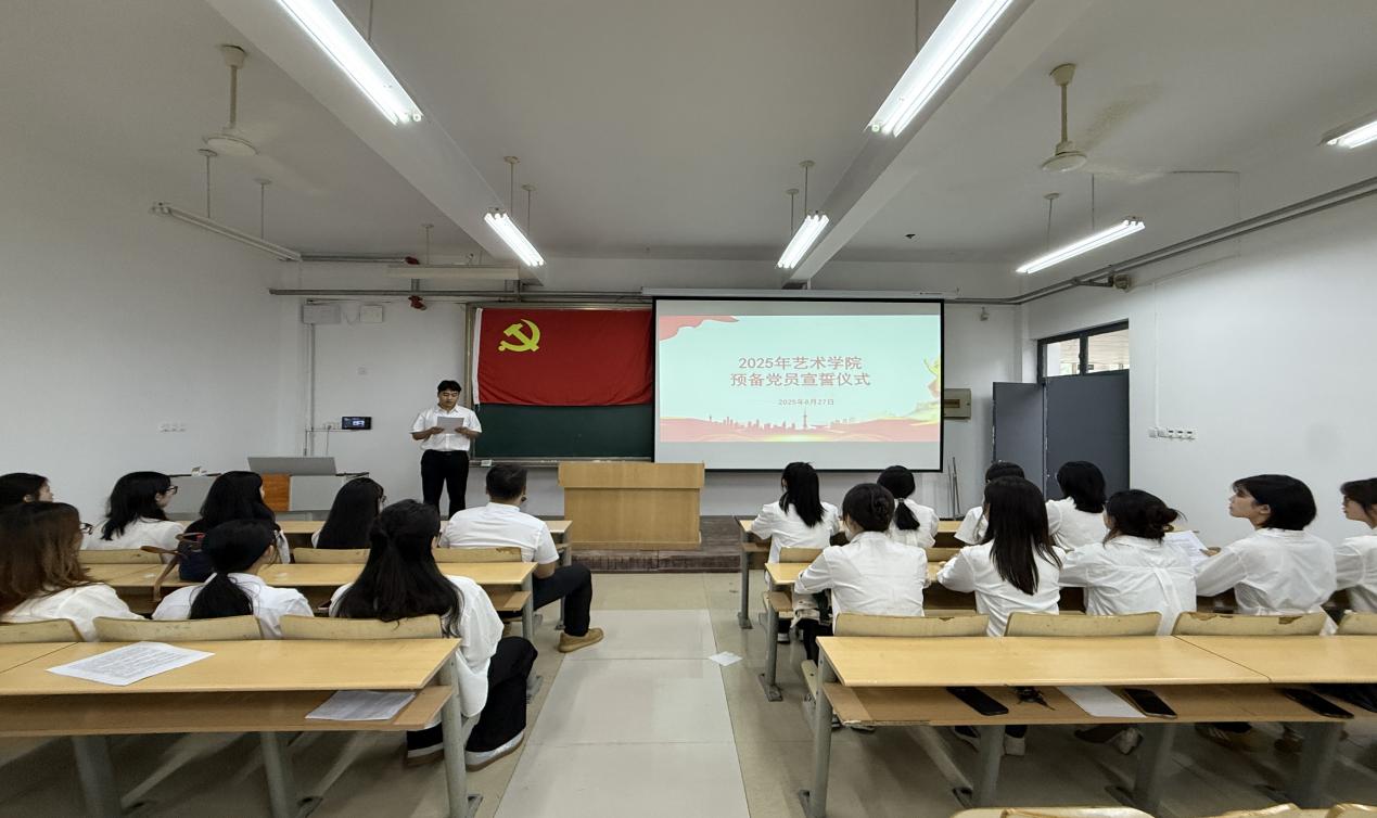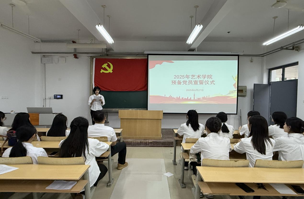 2025年6月27日,艺术学院在美术北楼103成功举办了2025年上半年预备党员宣誓仪式,为党组织注入新鲜血液。仪式由艺术学院学生第一党支部书记刘静主持,艺术学院2025年上半年全体预备党员参加。