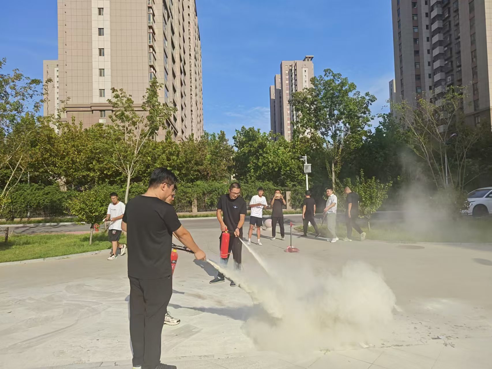 活动中,围绕灭火器的种类、性能、适用范围及使用方法进行了详细阐述,强调了“提、拔、瞄、压”四字口诀的正确操作步骤,即提起灭火器、拔掉保险销、瞄准火源根部、压下手柄喷射灭火剂。为了让师生们更直观地掌握灭火器使用技巧,培训现场还设置了模拟火灾场景和实操演练环节。通过亲身体验,大家不仅学会了如何快速有效地扑灭初期火灾,还增强了防火、灭火的责任感和紧迫感。