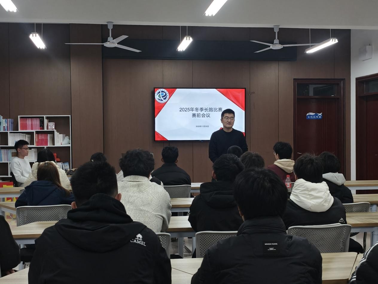 为保障2025年冬季长跑比赛安全有序开展,进一步凝聚团队力量,激发参赛选手斗志。2025年11月30日,自动化与电气工程学院于11教310教室召开2025年冬季长跑比赛赛前会议。辅导员商世昌主持,全体参赛选手及工作人员参会。